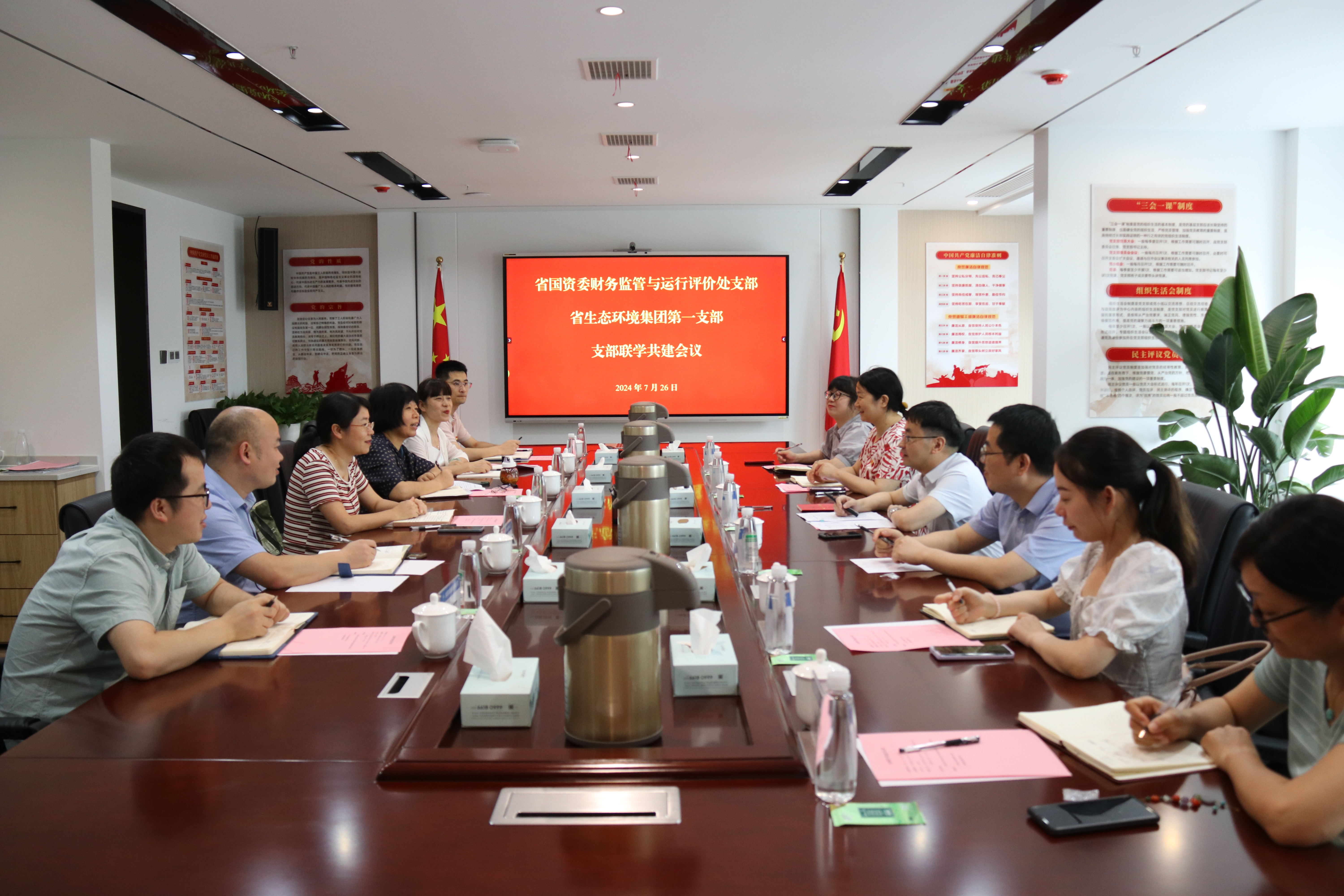 7月26日下午,省國資委財管運行處黨支部與省生態(tài)集團(tuán)本部第一黨支部聯(lián)合舉辦了主題為“黨紀(jì)共學(xué)鑄忠誠,業(yè)財融合促發(fā)展”的黨建共建聯(lián)學(xué)活動。省國資委財務(wù)監(jiān)管與運行評價處黨支部書記、處長陳兵,省生態(tài)環(huán)境集團(tuán)總會計師汪海燕,以及雙方黨支部部分黨員代表參加活動。