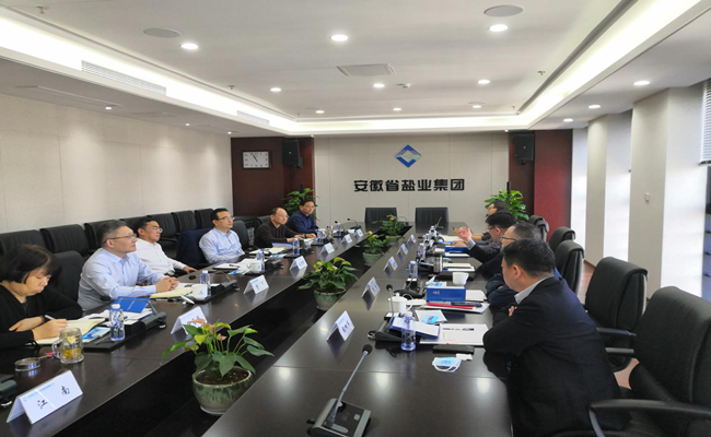 王思軍對(duì)趙玉祥一行的到來(lái)表示歡迎,重點(diǎn)介紹了省鹽業(yè)集團(tuán)近年來(lái)的經(jīng)營(yíng)情況、業(yè)務(wù)板塊布局、轉(zhuǎn)型發(fā)展及未來(lái)戰(zhàn)略規(guī)劃。王思軍指出,省鹽業(yè)集團(tuán)近年來(lái)順應(yīng)鹽業(yè)體制改革,堅(jiān)定轉(zhuǎn)型發(fā)展不動(dòng)搖,在做好傳統(tǒng)主業(yè)的基礎(chǔ)上,積極布局生態(tài)環(huán)保、城市更新、健康養(yǎng)老產(chǎn)業(yè),為安徽鹽業(yè)可持續(xù)、高質(zhì)量發(fā)展夯實(shí)基礎(chǔ)。