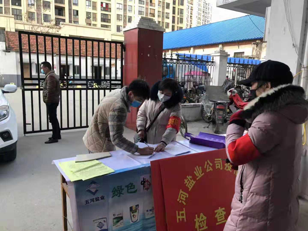 五河公司在保障食鹽安全供應(yīng)的同時,還肩負(fù)社區(qū)疫情防控社會管理責(zé)任,為當(dāng)?shù)卣謸?dān)解憂。疫情期間,黨支部書記、經(jīng)理薛寶成與其他巡查人員一起,對公司2個宿舍樓90余戶進行24小時疫情防控及入戶巡查,至2月12日已堅守疫情防控崗位13天,下一步還將繼續(xù)依照縣政府的要求,繼續(xù)做好疫情防控工作。對于其中的辛苦,他們從不多言,用他們的默默奉獻與堅守,扛起國有企業(yè)的責(zé)任與擔(dān)當(dāng),并且大家都有信心、有能力打贏這場疫情防控阻擊戰(zhàn)。