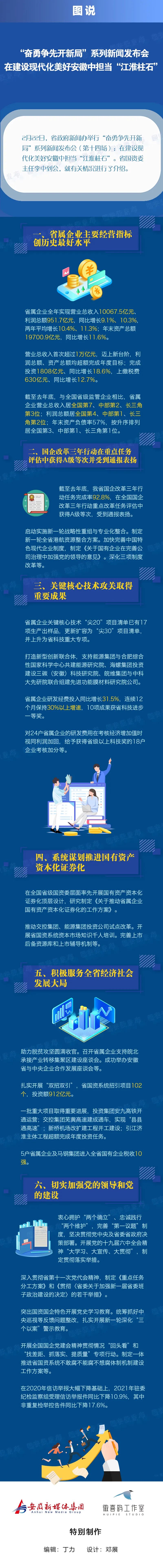 近年來,我省國(guó)企改革重點(diǎn)任務(wù)落地取得顯著成效。比如馬鋼通過戰(zhàn)略重組,去年?duì)I業(yè)收入和利潤(rùn)總額均創(chuàng)歷史新高,鋼鐵主業(yè)闊步邁入寶武系千億營(yíng)收、百億利潤(rùn)企業(yè)行列。江汽集團(tuán)在與大眾集團(tuán)戰(zhàn)略合作中對(duì)標(biāo)提升,全年累計(jì)銷量達(dá)到52.4萬(wàn)輛,同比增長(zhǎng)15.63%,遠(yuǎn)高于行業(yè)水平;安徽大眾新能源生產(chǎn)基地建設(shè)順利推進(jìn),將于今年9月份實(shí)現(xiàn)新車下線。港航集團(tuán)經(jīng)過資源整合,新增四級(jí)以上高等級(jí)航道里程577公里,全省高等級(jí)航道里程位居全國(guó)第五、長(zhǎng)三角第二,去年?duì)I業(yè)收入、利潤(rùn)總額同比增幅分別達(dá)39.6%、36.4%。