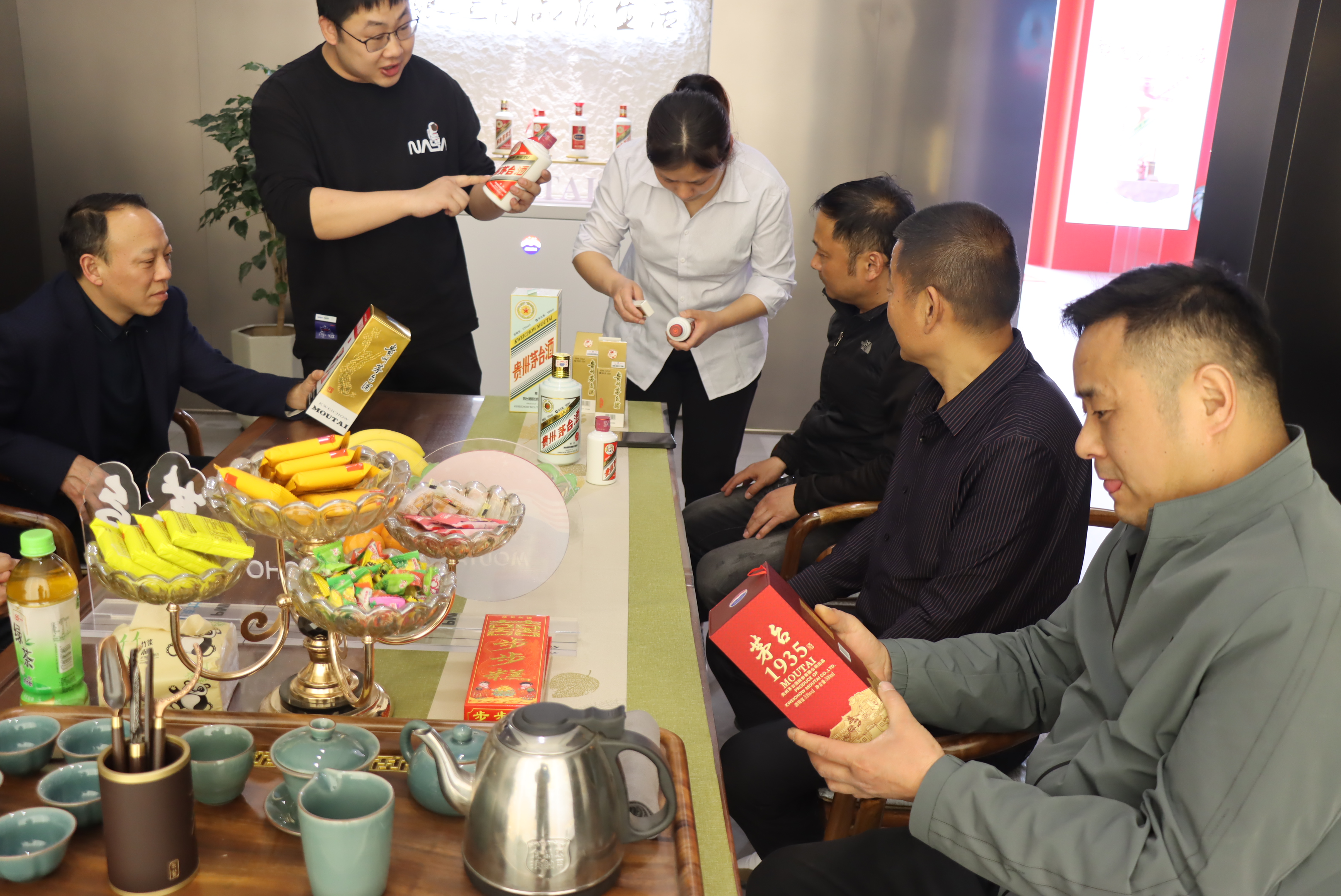 活動(dòng)中,專賣店店員為客戶們詳細(xì)介紹了i茅臺(tái)線上產(chǎn)品,宣傳茅臺(tái)知識(shí),貴州茅臺(tái)酒品質(zhì)卓越,具有“醬香突出、幽雅細(xì)膩、酒體醇厚、回味悠長、空杯留香持久”的酒體特點(diǎn),茅臺(tái)酒的香氣特征被剖析為9大類香氣,包括:花香、水果香、青草香、甜香、焙烤香、干植物香、醬香、酸香及其它香氣,這些呈現(xiàn)不同香氣特征的物質(zhì)組成了茅臺(tái)酒復(fù)雜的香氣特征。其以獨(dú)特高品質(zhì)的釀造工藝成為中國白酒的“活化石”。中國大曲醬香型的代表和鼻祖。在中國酒文化中占據(jù)極為重要的地位。