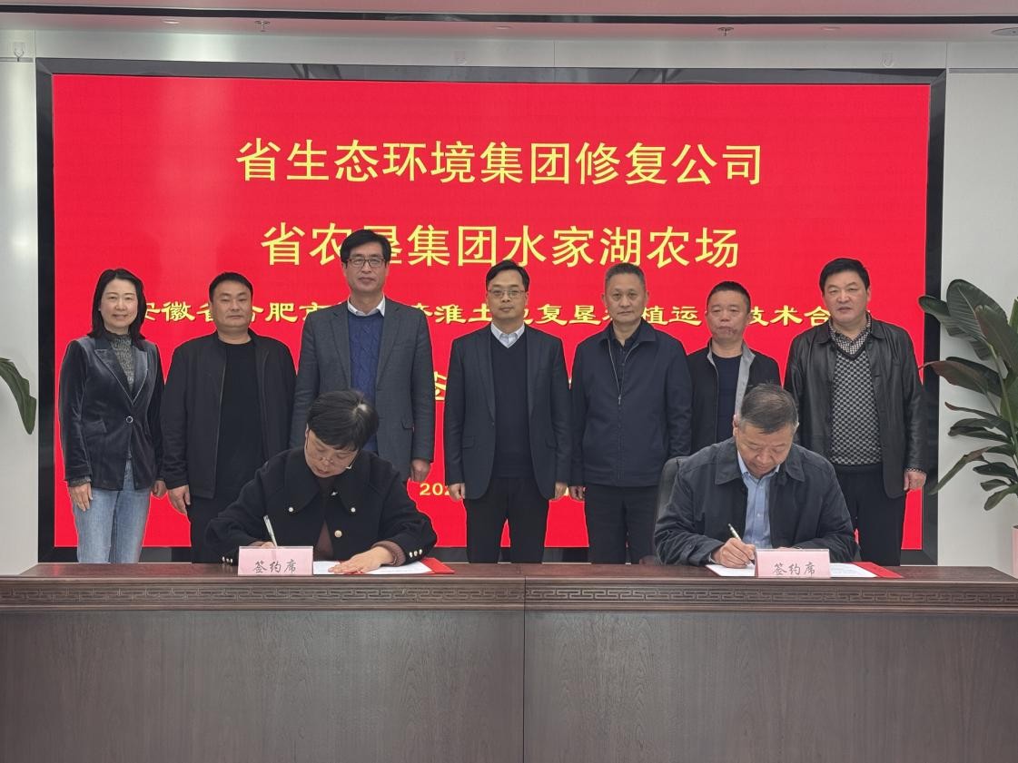 2025年3月21日下午,省生態(tài)環(huán)境集團(tuán)生態(tài)修復(fù)公司與省農(nóng)墾集團(tuán)水家湖農(nóng)場(chǎng)舉行引江濟(jì)淮工程(安徽段)合肥市高新區(qū)2號(hào)棄渣場(chǎng)臨時(shí)用地土地復(fù)墾種植運(yùn)營(yíng)技術(shù)合作簽約儀式。